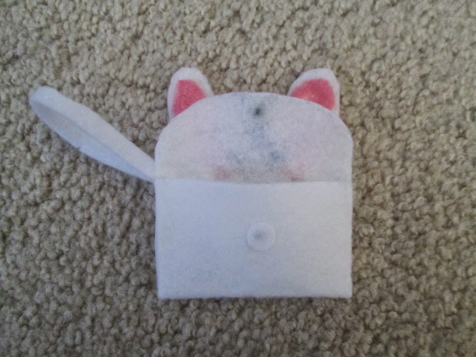 13) Glue the ears to the back of the purse like so.